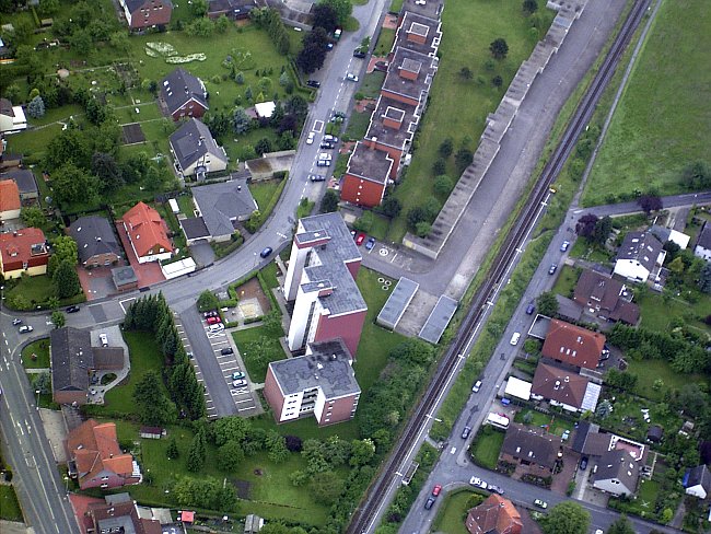 Blick von Alt-Barsinghausen auf den Kirchdorfer Bahnhof. Aufnahmejahr 2001