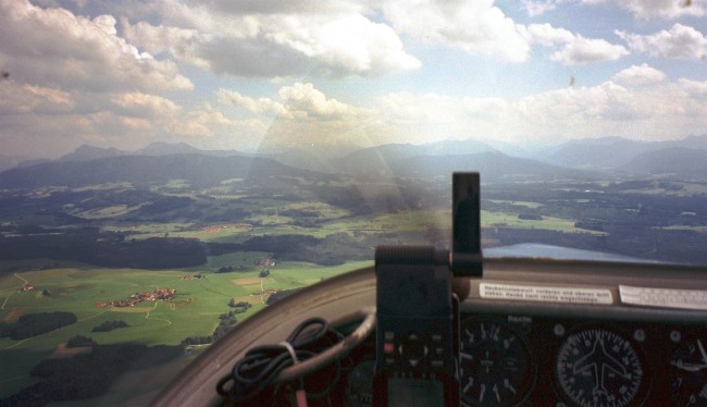 Klaus Reski und ich im Motorsegler auf dem Weg von Burg Feuerstein EDQE
