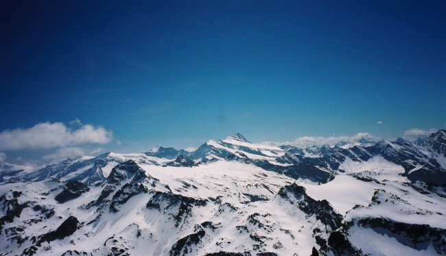Blick vom Flugplatz Zell am See LOWZ auf den Kapruner Gletscher (Bildmitte).
