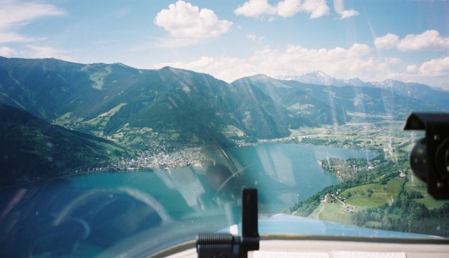 Der Anflug zum Flugplatz führt uns direkt über den Zeller See