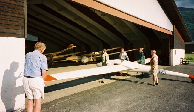 in die Segelflugzeughalle schieben. Dabei ist gute, vorausschauende